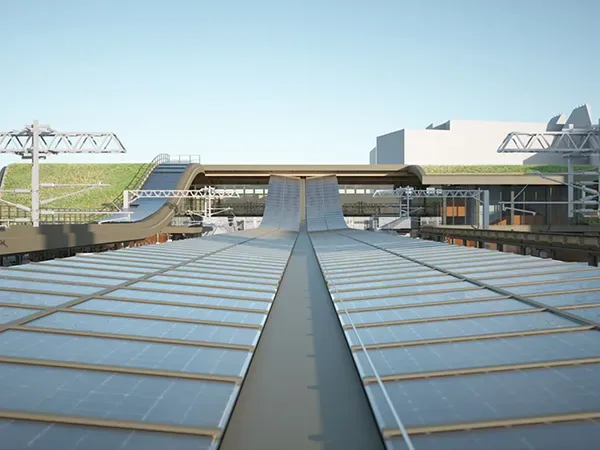 La estación contará con paneles fotovoltaicos, un techo verde y azul para la gestión del agua pluvial y hábitats para la vida silvestre, en consonancia con los objetivos de biodiversidad y emisiones cero de la ciudad. El diseño accesible de la estación reducirá el tráfico vehicular local en más de 1100 desplazamientos diarios y promoverá opciones de transporte sostenible, lo que mejorará la calidad del aire y de la vida a nivel regional.